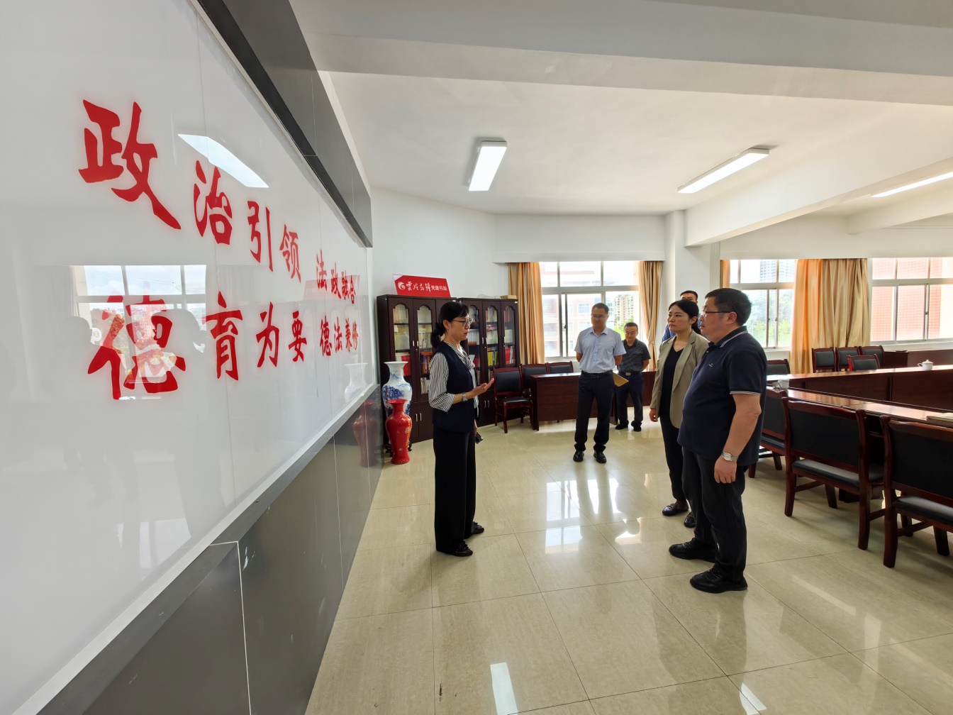 在法政学院,王建颖强调,公平公正是“法”的内核,也是社会主义法治精神的集中体现,要秉持公平正义原则,大力弘扬和践行法治精神;要倍加珍惜学院欣欣向荣、蒸蒸日上的良好局面,抢抓机遇、把握当下,建强队伍、团结奋进,通过团队的力量开创发展新局面;要开拓进取,认准对的事就要果断推、大胆做,依托“南亚东南亚投资权益维护中心”,在小语种法律人才培养方面早出成效;要加强年轻干部培养,压担子、助成长,搭平台、促交流,为学院高质量发展提供有力的人才梯队支撑。