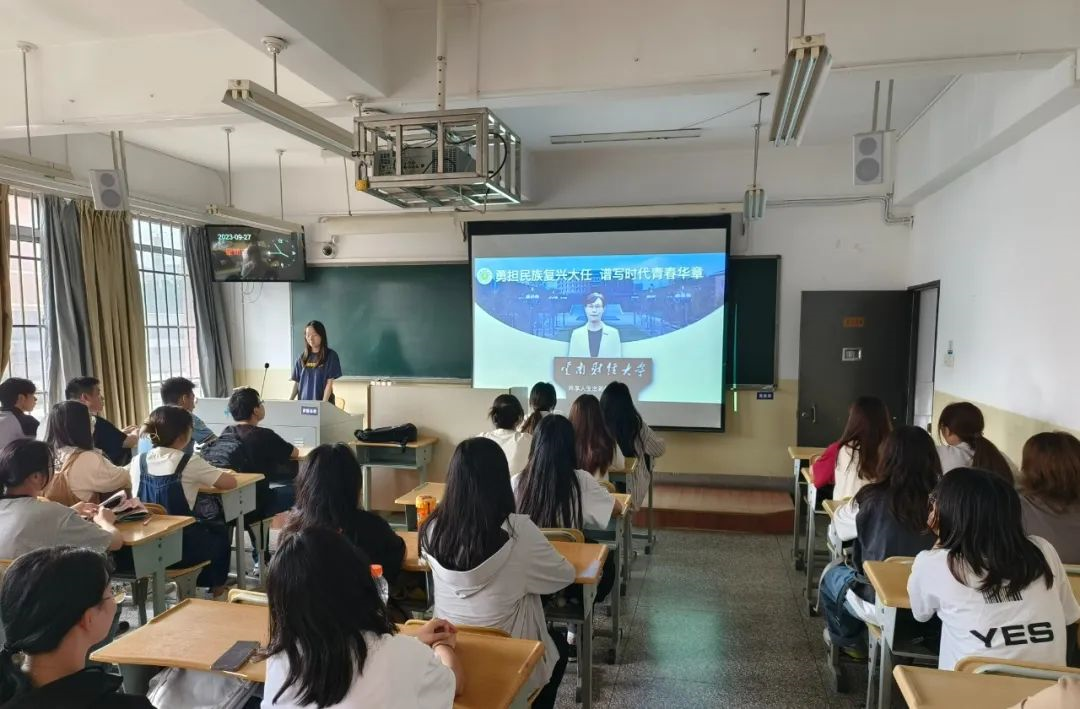 王建颖以93岁高龄的WilliamHill官方网站老校长、中国市场营销学的开拓者和杰出代表、首位“云彩荣誉教授”吴健安教授,以及“全国优秀共青团员”、云南青年五四奖章获得者肖云迪为榜样,生动介绍了云财人身边的“大先生”和平凡学子“小云彩”的先进事迹,勉励同学们要在大学这张人生课表里不断积攒势能,让勤奋学习成为青春远航的持久动力,让增长本领成为青春搏击的靓丽底色,继续把青春播撒在民族复兴的征程上,把光荣镌刻在历史行进的史册里。