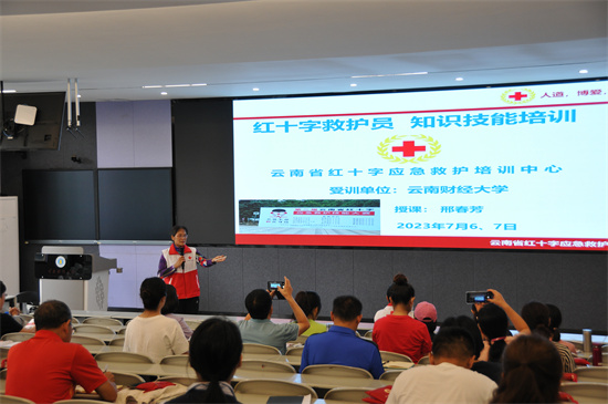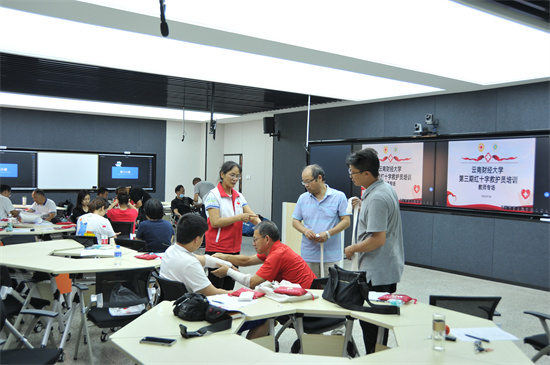 为进一步宣传普及应急救护知识,增强防灾避险意识,提高教职工的自救互救意识和能力,弘扬红十字会精神,7月6、7日,校红会邀请了云南省红十字会专家为教职工们开展了应急救护技能培训。