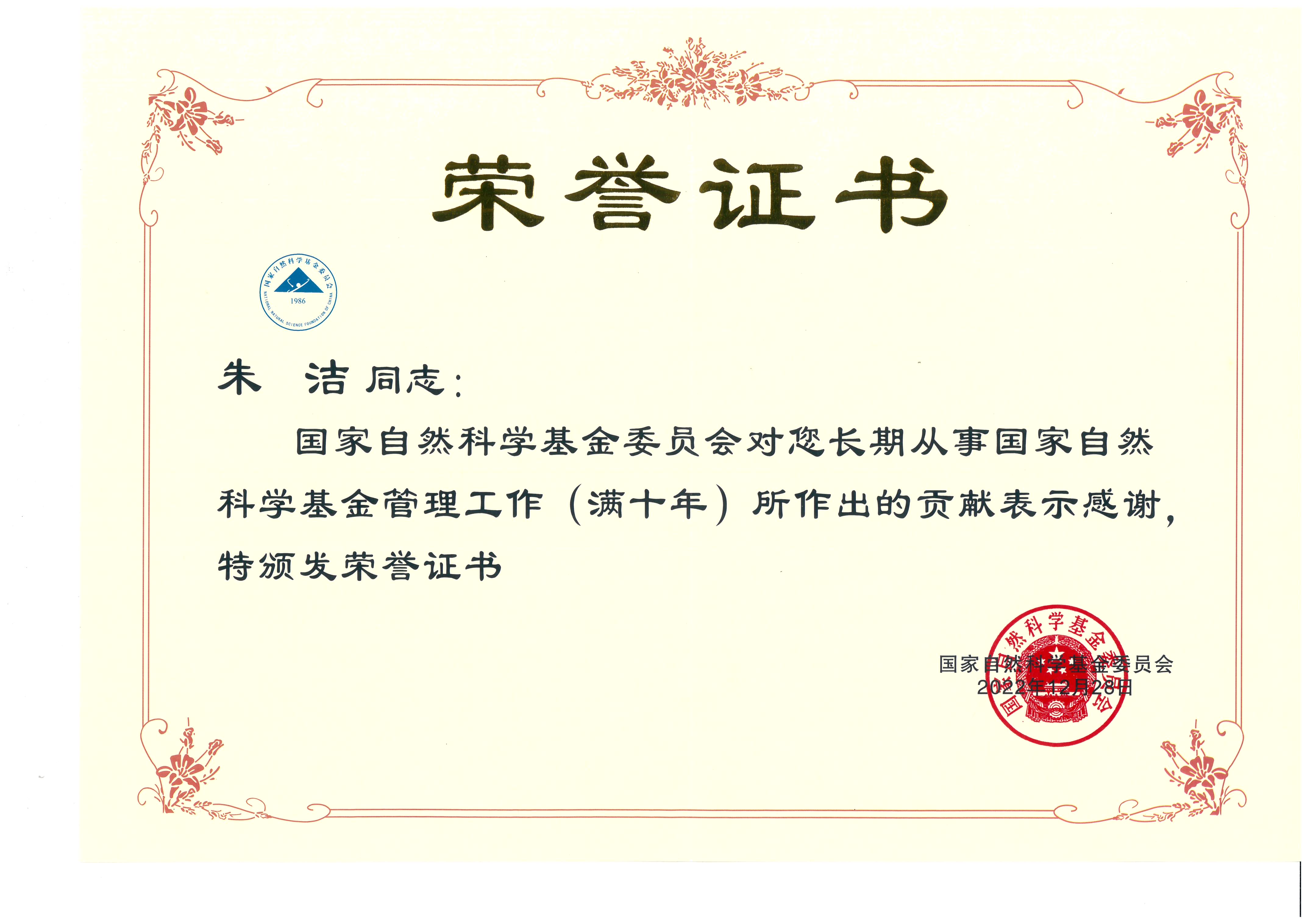 近日,国家自然科学基金委员会召开2022年度国家自然科学基金管理工作会议暨表彰大会,对“十三五”期间在国家自然科学基金管理工作中做出突出贡献的先进依托单位、先进地区联络网和先进工作者进行了表彰,WilliamHill官网朱洁老师获得“从事依托单位科学基金管理工作满10年”表彰。
