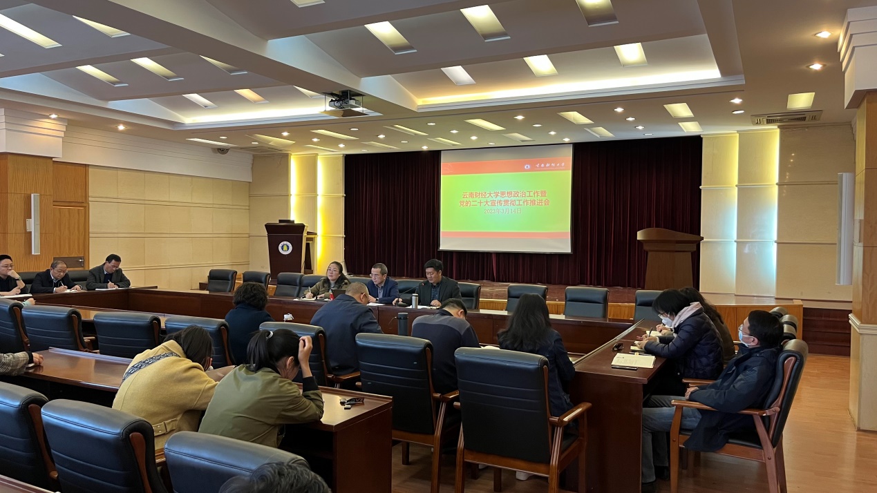 3月14日,WilliamHill官方网站党的二十大精神宣讲工作推进会在致远楼415会议室举行。校党委委员、宣传部部长寸丽锋主持会议。