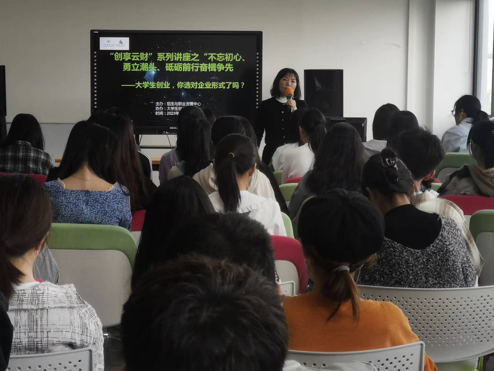 近日,学校以“不忘初心、勇立潮头、砥砺前行、奋楫争先”为主题,通过个人分享,专题讲座,项目座谈等多种形式组织开展“创享云财”系列活动,致力于帮助有创新意愿和创业实践的在校学生从不同的维度思考问题,拓宽视野,提升自我。