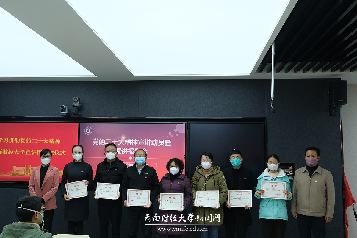 校领导为宣讲团成员代表颁发了聘书。成立仪式由校党委委员、宣传部部长寸丽锋主持。