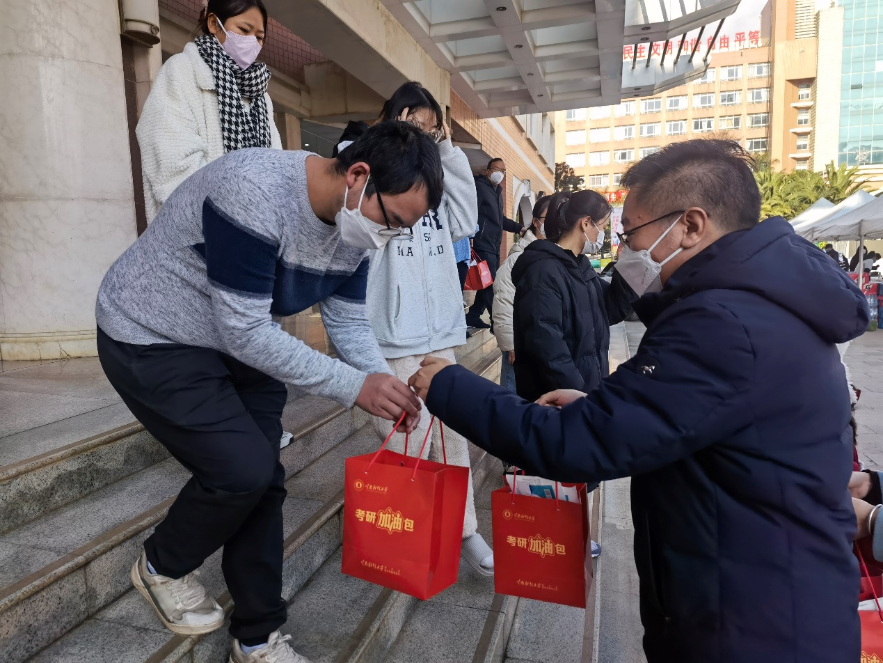 热情的问候、贴心的慰问礼品,让备战考研的学子备受鼓舞,动力满满,真切地感受到了来自学校的关怀与期望,纷纷表示会利用好最后的冲刺时间,以最佳身心状态备战考试。