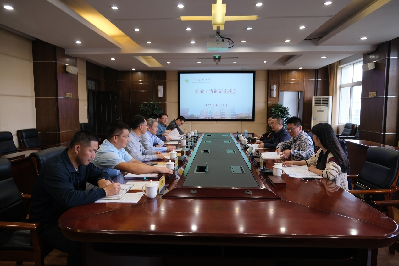 10月27日,省人社厅党组成员、副厅长张金涛,工资福利处处长钱应飞,事业单位人事管理处副处长陈冰,以及省教育厅机关党委(人事处)副处长和缘玉一行4人到校开展绩效工资专题调研。学校党委副书记、校长王敏与调研组举行座谈,校党委委员、副校长李正彪主持会议。