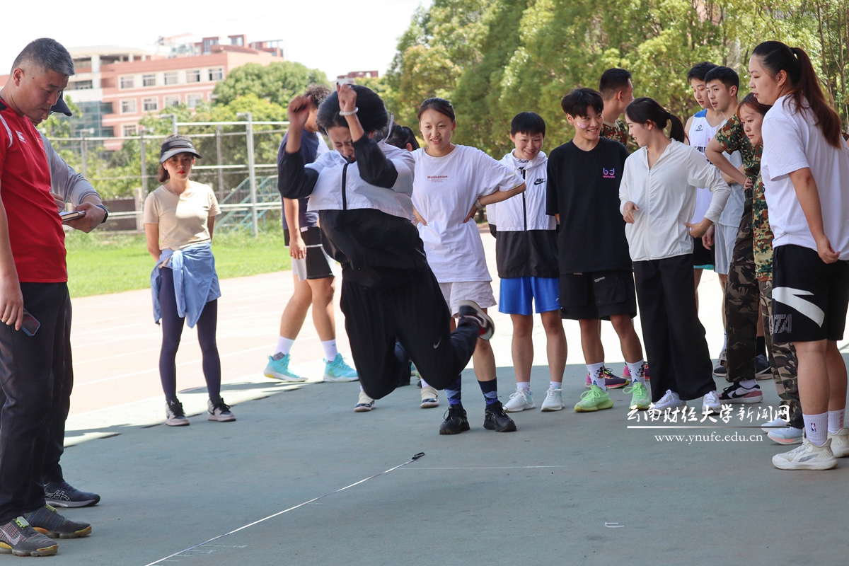 选拔活动在龙泉校区南院田径场进行,50余名学生参加了体能测试。同学们在专家组的指导下逐一完成了立定跳远、30米、100米、摸高等项目的测试。