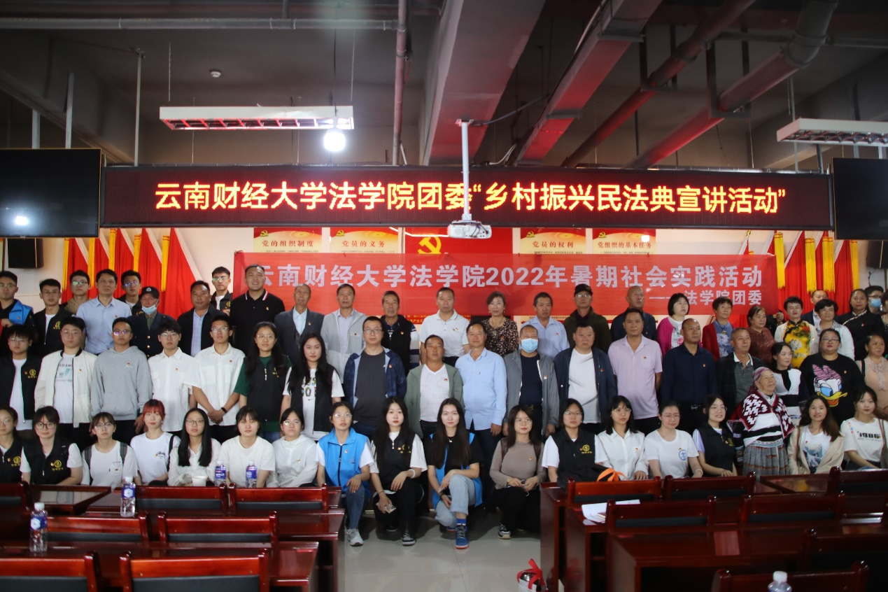 为贯彻落实习近平总书记在建团100周年上的重要讲话精神,发挥法学青年在法治建设中的青春力量,7月12日,法学院社会实践队到权甫村开展乡村振兴普法调研活动,法学院党委书记李姗姗、安宁市政法委常务副书记李剑飞、法学院团委书记李浩等参加活动。