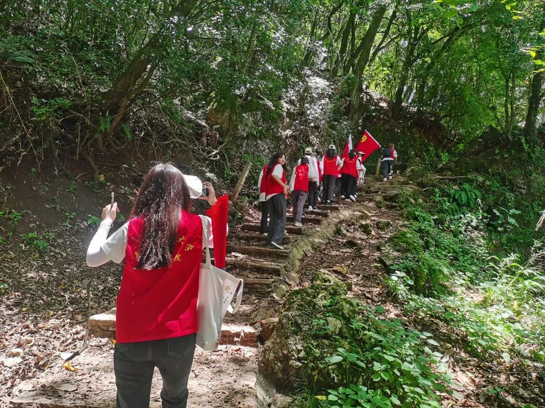 金融学院2022年暑期“三下乡”社会实践团围绕“追寻红色记忆,续写青年担当”主题,到石林县圭山镇开展实践调研。实践团走进“一支人民的军队”纪念馆了解圭山革命发展历史,了解“云南人民闹革命,圭山打响第一枪”的壮丽凯歌,追寻革命先辈足迹,重走圭山革命栈道。团队成员历时1.5小时在相互支持、克服困难中登上海拔2601.4米的圭山顶,在山顶唱响《团结就是力量》和《我和我的祖国》两首歌曲,表达心中的爱国情。在追寻红色初心中,实践团成员感悟到:作为新时代的青年,我们要传承红色基因,牢记初心和使命,发扬“敢为、能为、先为”的边纵精神,不断增强各方面本领和能力。