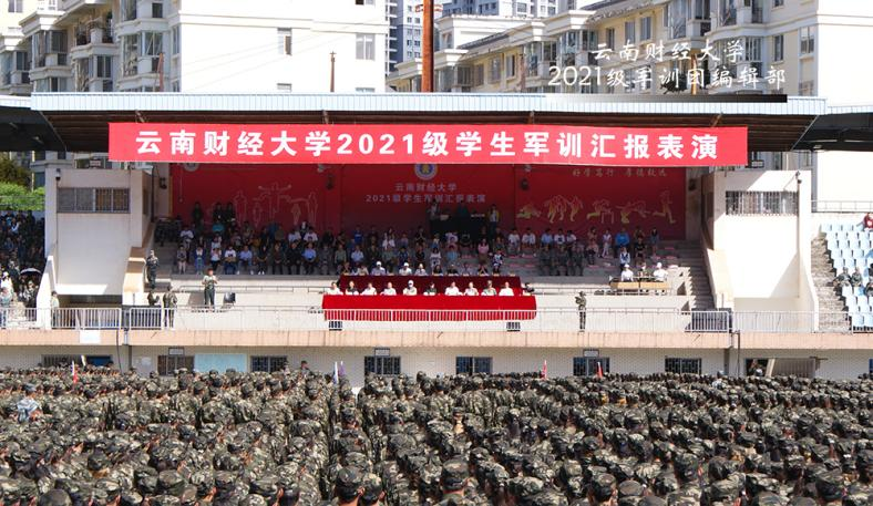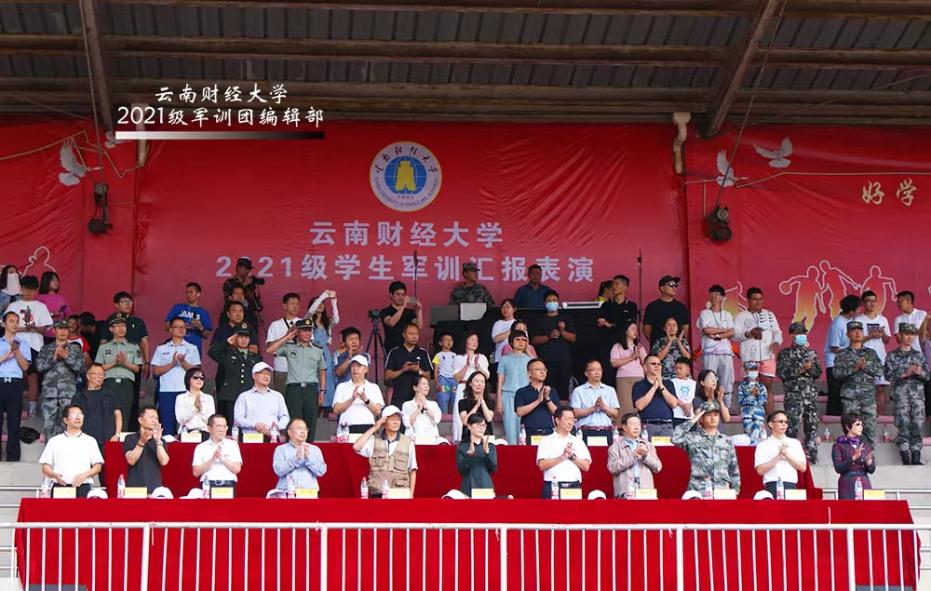 此次军训汇报表演在龙泉和安宁校区同步举行,一批表现突出的团体和个人得到表彰。学校领导在讲话中对承训部队、带队老师和工作人员表示衷心感谢,向完成军训汇演的2021级同学表示祝贺,希望同学们深入贯彻落实习近平总书记在庆祝中国共产主义青年团成立100周年大会上的讲话精神,坚定理想信念,保持优良作风,练就过硬本领,自觉担当尽责,秉承“好学笃行、厚德致远”校训,发扬“自强不息,敢为人先”的云财精神,争做堪当民族复兴大任的时代新人。