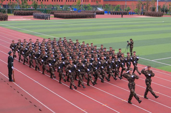 2021级学生军训汇报表演在雄壮的《中国人民解放军军歌》中落下帷幕。
