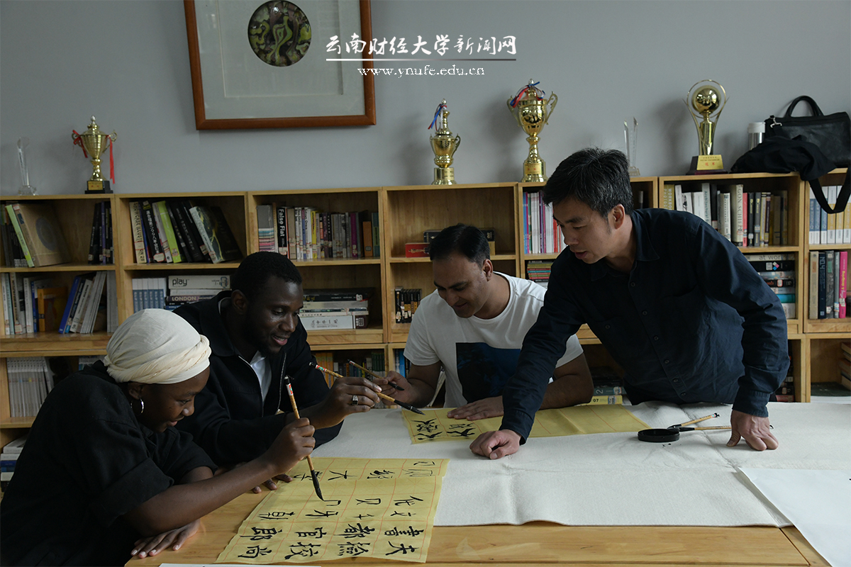 下午两点半,在学校对外合作交流处和国际学生教育管理中心老师们的带领下,外籍师生参观了安宁校区图书馆,并来到传媒与设计艺术学院工作室,亲身体验了软陶制作和书法艺术的魅力。