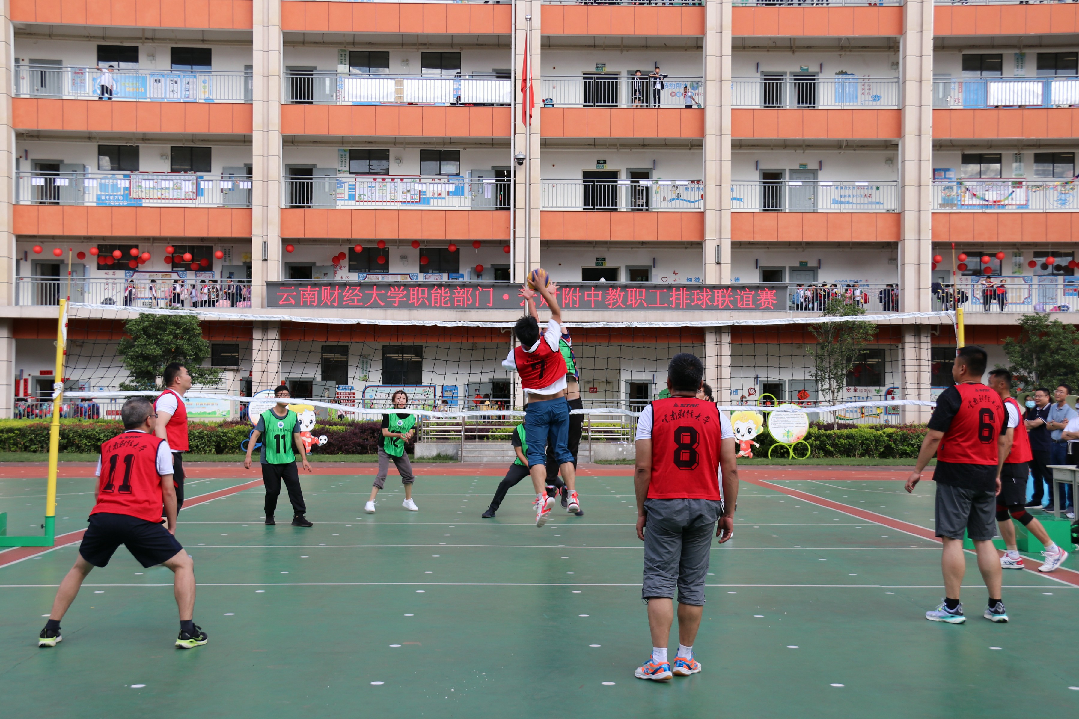 为丰富疫情防控期间教职工的文化生活,调动教职工参与体育锻炼的积极性,增进WilliamHill官方网站与附属中学之间的部门联动,6月2日下午,WilliamHill官方网站党委书记王建颖,党委委员、副校长施仲军带领财大职能部门排球联队到附属中学开展体育文化活动交流,并与附属中学教职工开展了排球联谊赛。