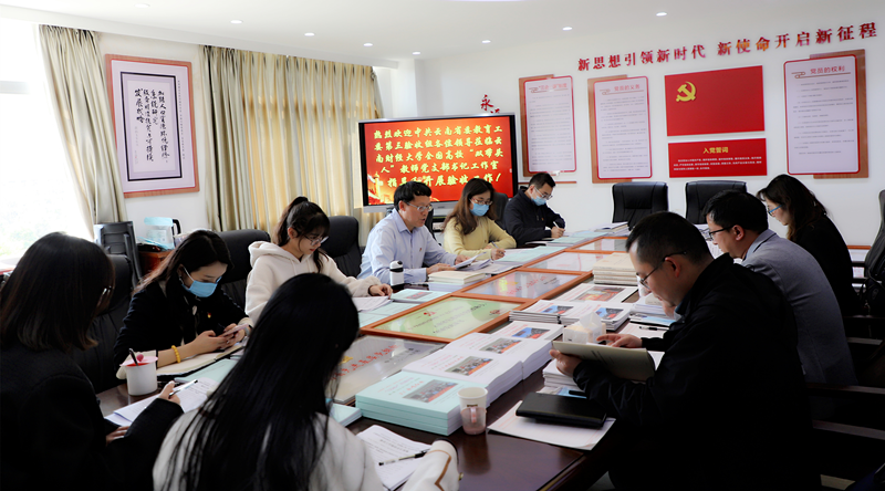 2022年3月7日,受教育部委托,省委教育工委第三实地验收工作组到“双带头人”教师党支部书记工作室开展验收工作,实地查验工作室的建设情况和建设成果台账资料。