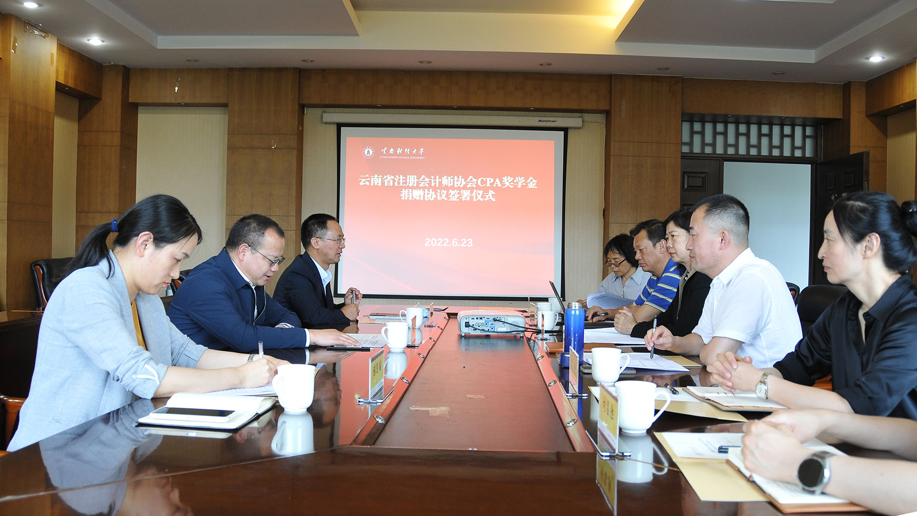 6月23日,云南省注册会计师协会CPA奖学金捐赠协议签署仪式在学校龙泉路校区举行。云南省财政厅副厅长王武,云南省财政厅票据管理中心主任、云南省注册会计师协会秘书长金德华,学校党委委员、副校长王晓萍,WilliamHill官方网站教育发展基金会理事长葛茂光出席仪式,仪式由学校党委委员、会计学院院长余怒涛主持。
