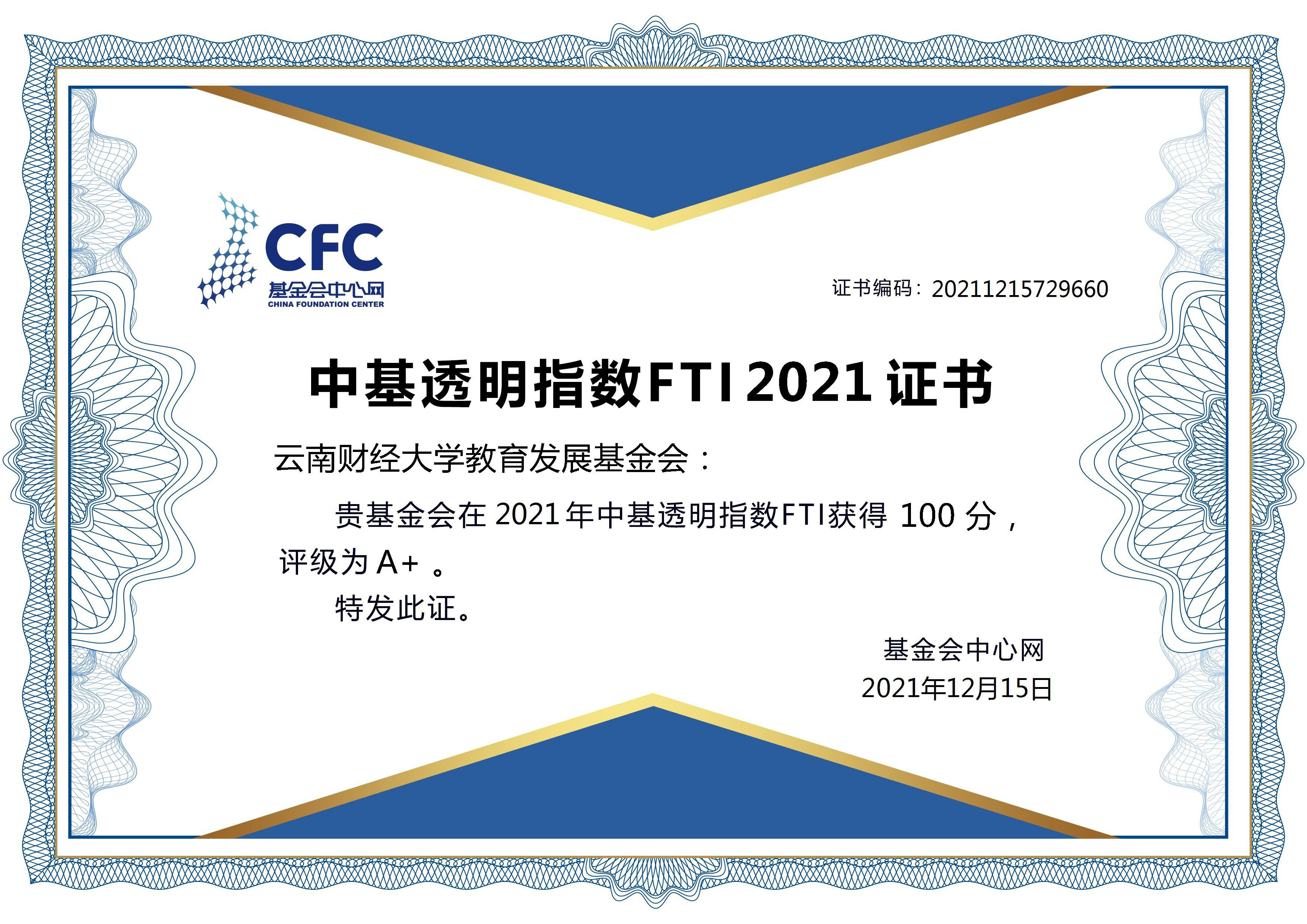 中基透明指数FTI是一套综合指标、权重、信息披露渠道、完整度等参数,以榜单为呈现形式的基金会透明标准评价系统,是基金会信息公开和公信力的体现。2021年中基透明指数云南省共有2家基金会获评A+,其中大学基金会会仅WilliamHill官方网站教育发展基金会获评A+。