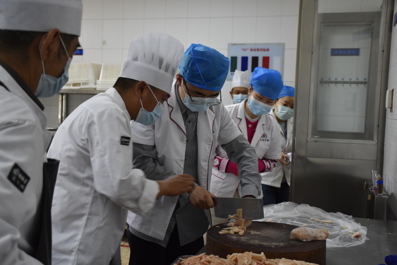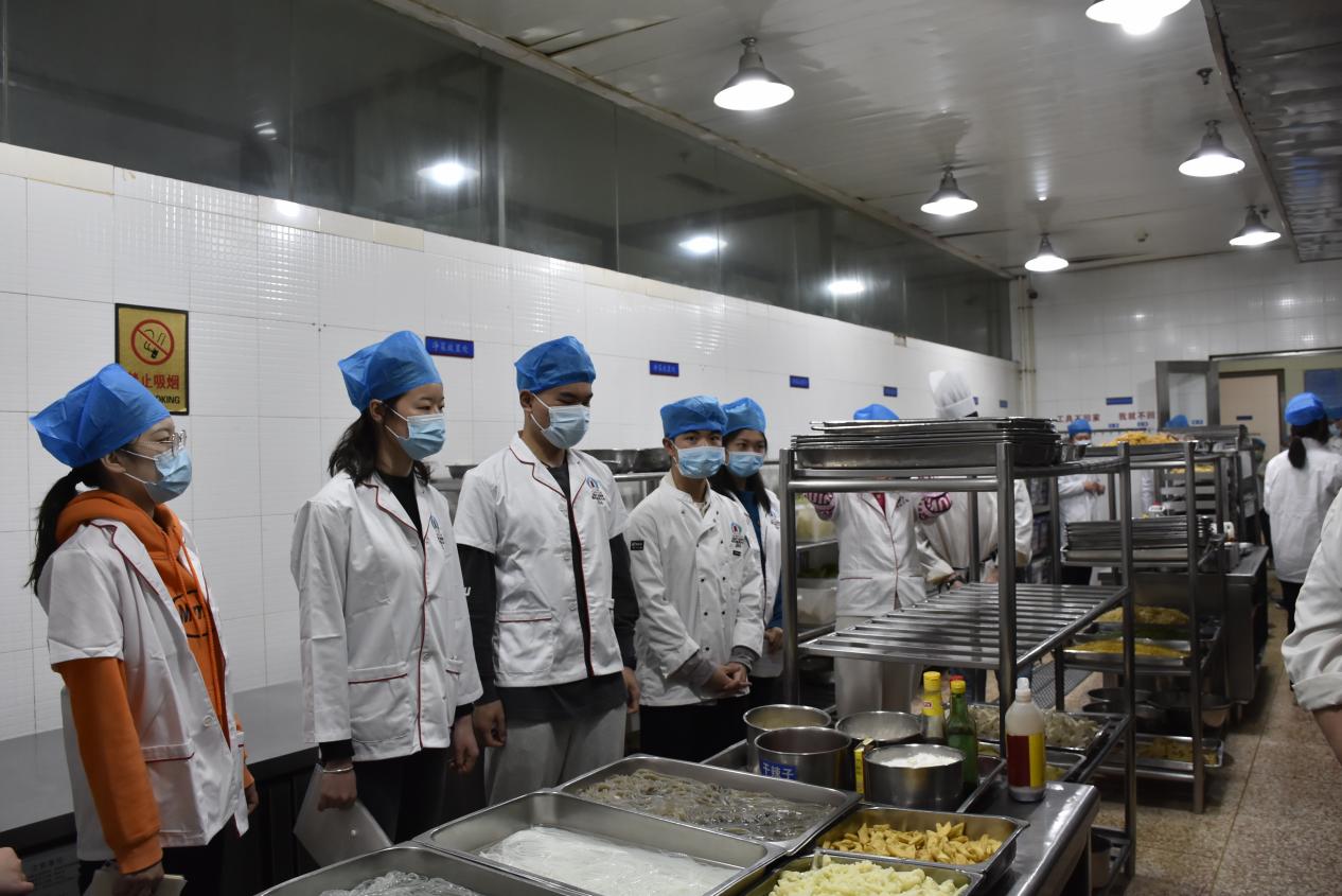 3月24日上午,后勤产业集团邀请18名学生代表(本科生10名、研究生6名及大学生记者2名)对疫情防控期间学校食堂的“6T”管理实务进行实地参观和了解。在副校长彭强,后勤产业集团党委书记段云赋、总经理李光香和餐饮服务中心相关工作人员的带领下,学生代表对学校食堂的原料采购、食品贮存、生产加工、食品留样、清洗消毒和员工管理等工作环节进行了现场参观和监督,并参与了菜品的制作和加工,亲身感受加工制作环节和流程。