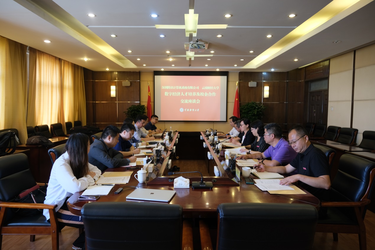 座谈双方主要围绕数字经济人才培养、科学研究等方面的校企合作事项进行了沟通与交流。