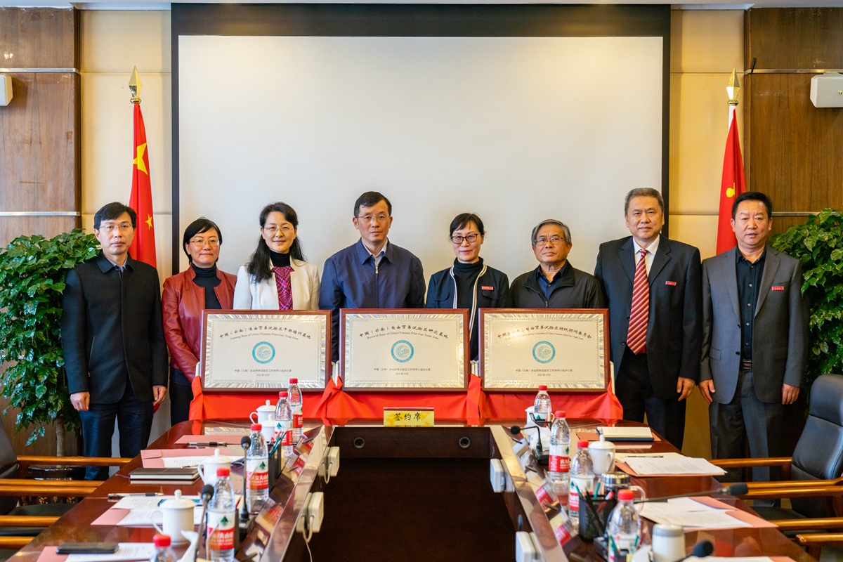 省商务厅相关部门负责人,学校办公室、科学技术处、财政与公共管理学院、信息学院、海外学院、印度洋地区研究中心负责人参加仪式。自贸试验区红河和德宏片区自贸办及管委会、自贸试验区联动创新区曲靖经开区、大理经开区、普洱国家绿色经济示范区、中老磨憨—磨丁经济合作区管委会相关部门负责人等线上参会。