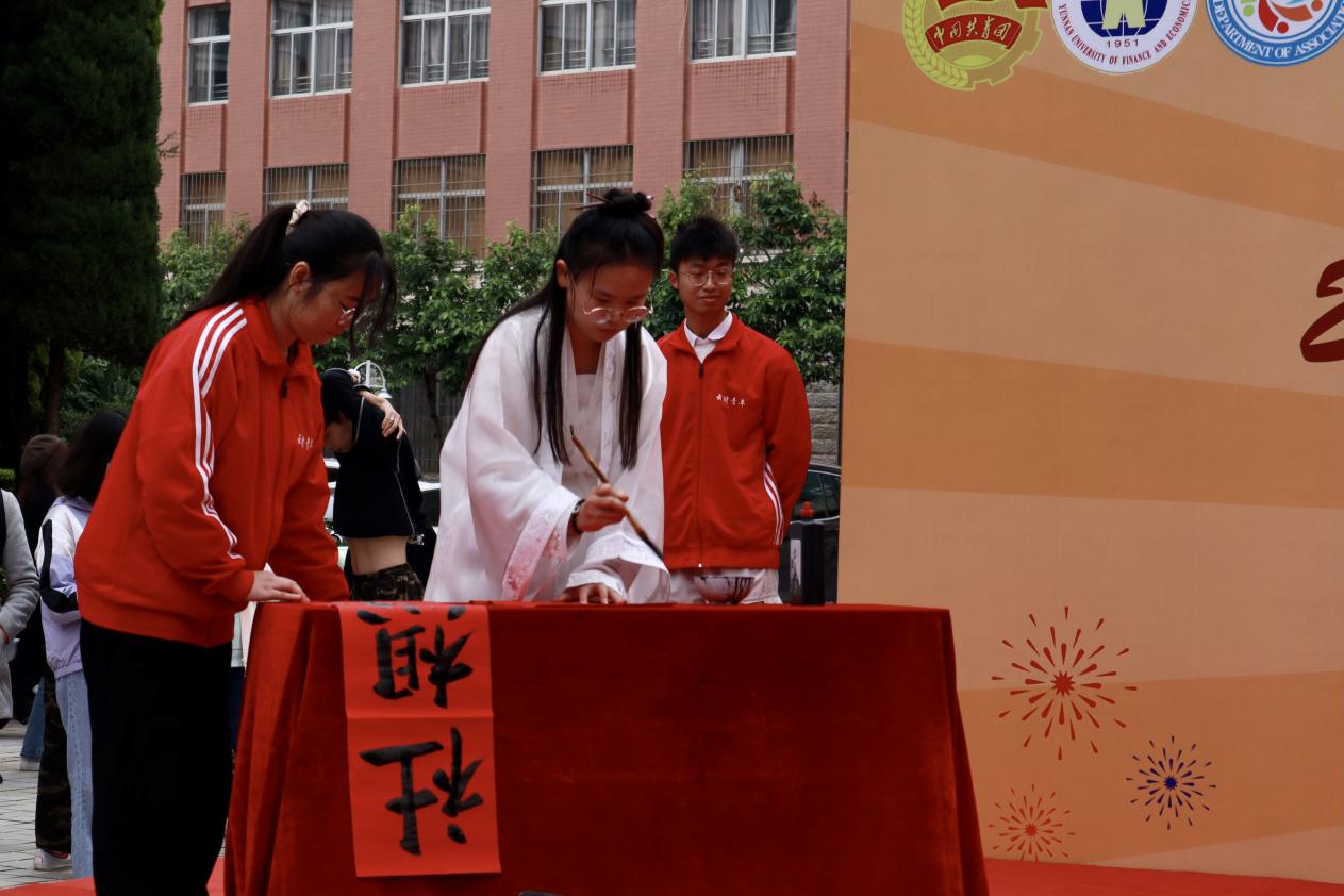 博览会依托“社彩剪影”展示77家社团的特色作品。“‘礼乐’中国传统文化传习社”“雨林风情协会”“民族团结进步社”等具有民族特色社团将中国传统文化的精神内涵通过汉服、扎染、民族工艺品、书法绘画、茶道、传统礼乐展示等形式展示,让同学们感受民族团结一家亲的和谐氛围,也将民族文化、传统文化的元素融入其中。