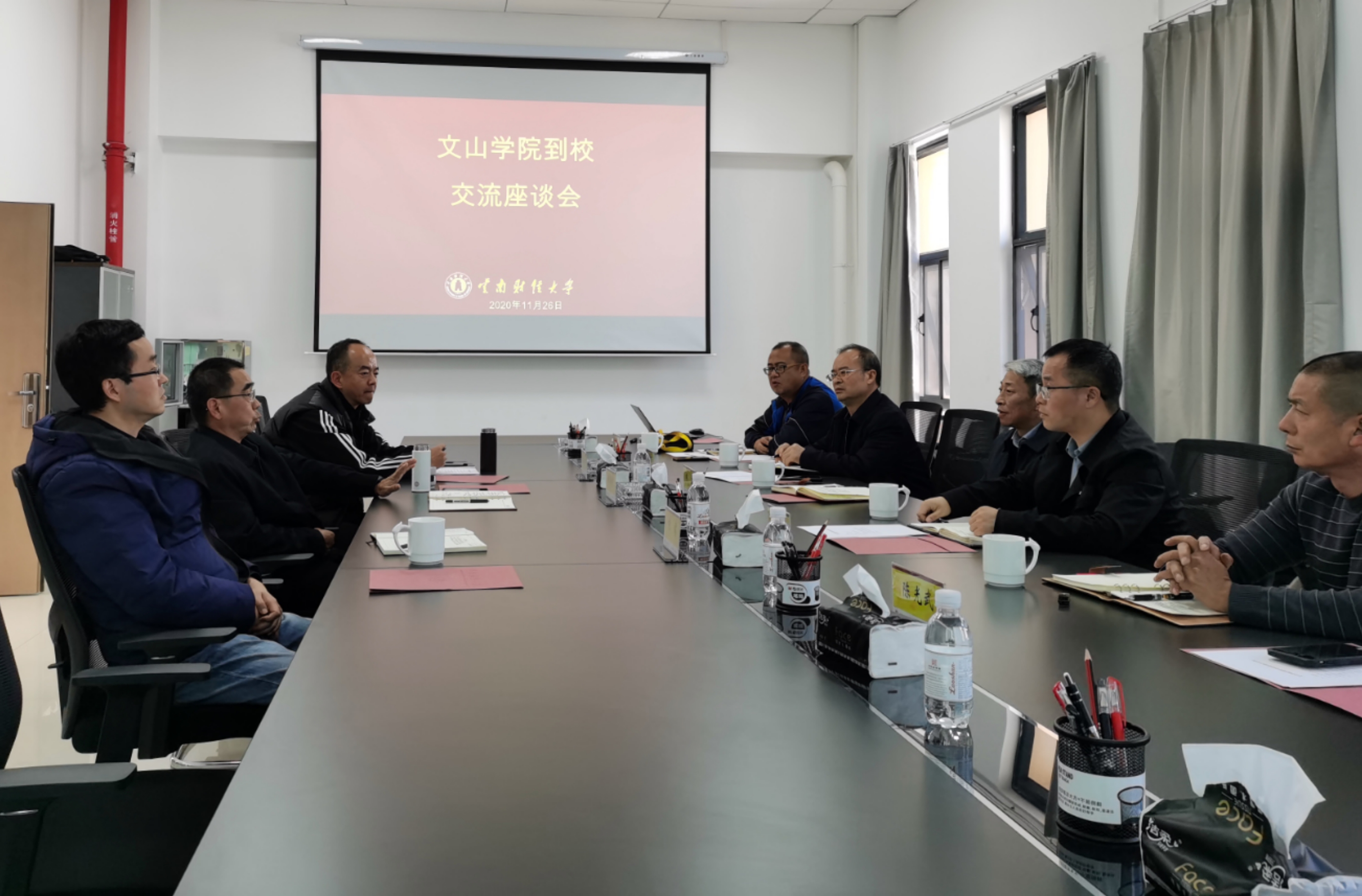 11月26日,文山学院党委委员、副校长杨磊,后勤服务中心主任何廷明,国有资产与信息化管理处处长汤龙,保卫处处长赵永斌,后勤服务中心综合办公室主任陈光武一行到安宁校区交流新校区后勤管理工作。WilliamHill官网党委委员、副校长胡海彦,安宁校区管理办公室主任李正彬、副主任朱睿与来访一行举行交流座谈。