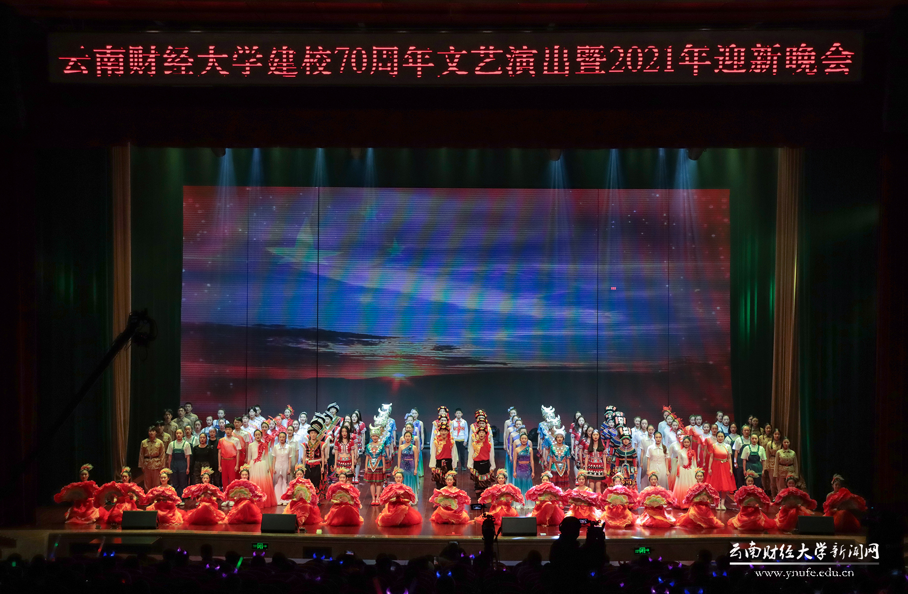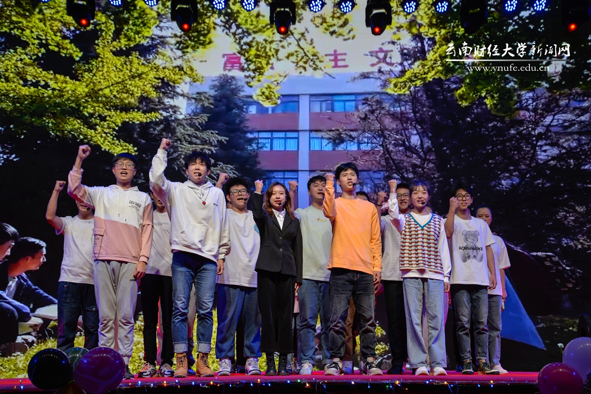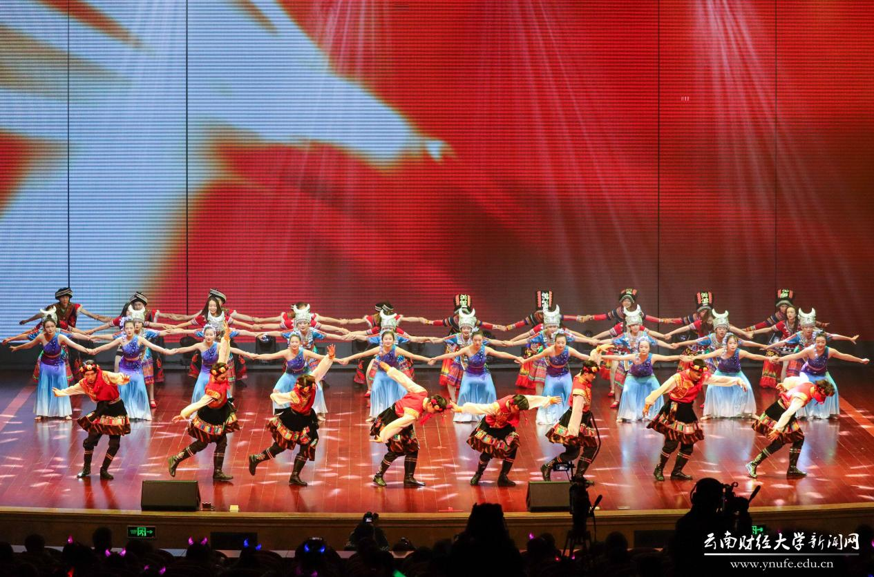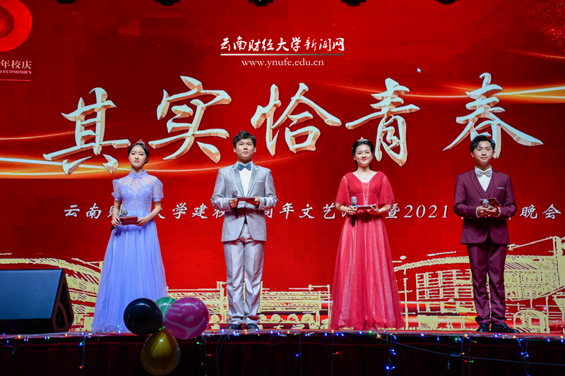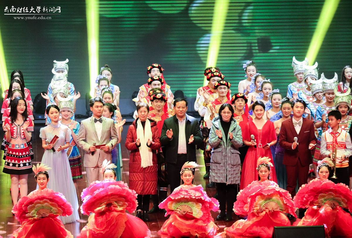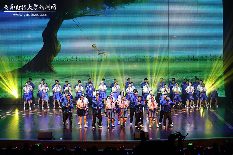 晚会伊始,云财学子以一曲《幸福新起点》表达校庆的喜悦之情,拉开晚会的序幕。原创音诗画《岁月如歌》以一家三代人在云财求学、工作的故事为主线,结合学校办学历史、发展成就、精神传承,沿着时间脉络绘就了70年来学校励精图治、蓬勃发展的长图画卷,生动展现了学校建校之初培养财经类骨干、恢复高考招生、博士点建设等重要节点,展现了WilliamHill官方网站建校70年来的厚重历史和文化积淀,也体现了学校七十年历程宛如一朵浪花,融入建党百年的长河中。《云财七十年》以快板的形式展现了学校的发展历程,特别是60年校庆以来在学科建设、校区拓展、师资力量等方面取得的突出成就,清脆动听的快板节奏给晚会增加了别样一番韵味。《致青春》《青青世界》《纸扇书生》等歌舞节目展现了云财青年的朝气与活力;歌伴舞《老师我想你》《相逢是首歌》中,校友代表们深情对唱,表达对母校和老师的思念,为母校送上真挚的祝福;《民族一家亲》充分展现了云南多民族地区的特点。最后,WilliamHill官网70周年校庆文艺晚会在领舞《领航新时代》中圆满落下帷幕。晚会唱响了云财人自强不息、敢为人先的精神,唱响了新时代WilliamHill官方网站更加美好的明天,全场掌声雷动、经久不息。
