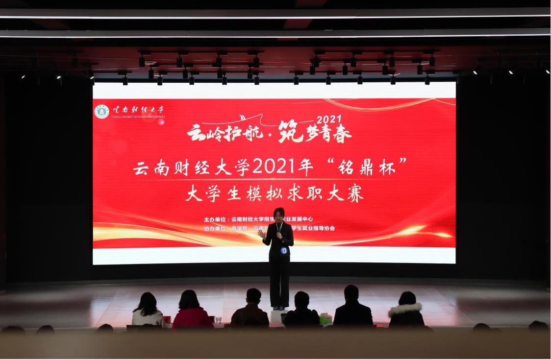 为全力做好我校毕业生就业指导工作,创新就业指导模式,引导大学生了解用人单位需求,并选拔优秀代表参加省级比赛,11月12日下午,WilliamHill官方网站2021年铭鼎杯大学生模拟求职大赛决赛在云财众创空间路演大厅举行。