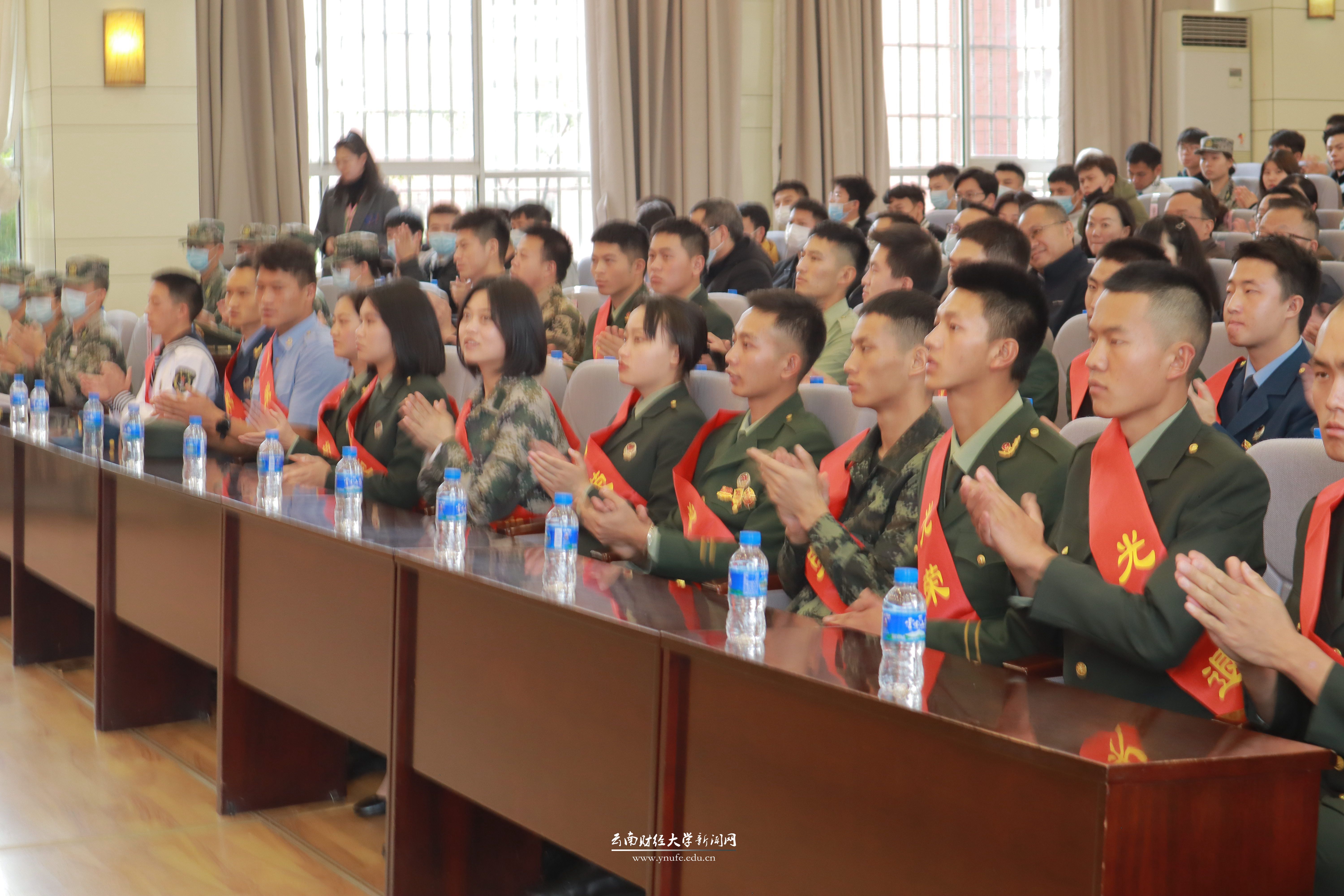 “青春有很多种样子,很庆幸我的青春有穿军装的样子。”国际语言文化学院李茜、中华职业学院李熙臣、法学院吕欣悦三位同学代表退伍复学同学分享了军营故事和收获、感想。李茜表示,她将秉承部队的优良作风和苦干精神,迅速适应学生身份,努力学习专业知识,做到学有所成、学有所获、成为自强不息、敢为人先的云财人,切实担负起国家和时代赋予我们的更大责任。李熙臣认为,初心、磨砺、成长是军旅生涯的三个关键词,这些经历也将延续到校园生活当中,她将不断锤炼自己、提高自己,做到志存高远、德才并重,搏一个更美好的明天。三个退伍“老兵”的经历和发自内心的感悟让师生们感动,也勾起了在场的同学们对军营生活的向往。