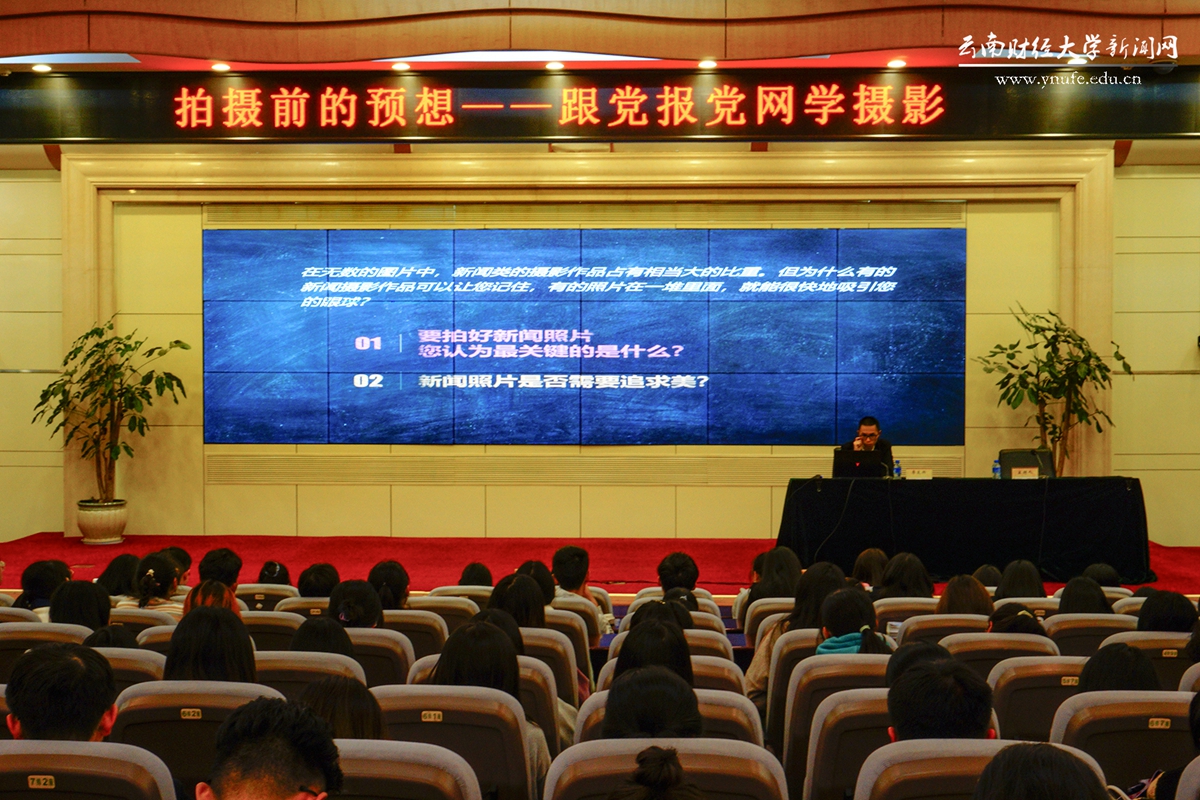 11月11日晚,李发兴以“拍照前的预想——跟党报党网学摄影”为题在龙泉路校区凌云楼国际学术报告厅开展讲座。讲座由宣传部副部长李晓霞主持。