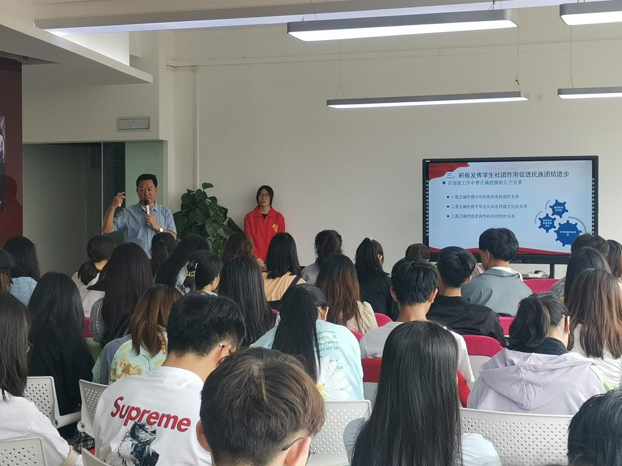 为指导学生社团发挥好丰富校园文化的功能,规范学生社团工作,进一步推动民族团结进步教育,6月29日上午,学校党委委员、副校长施仲军以“百年光辉照边疆·跟党奋进新时代”为题,为学校部分学生社团成员开展民族团结进步教育讲座。