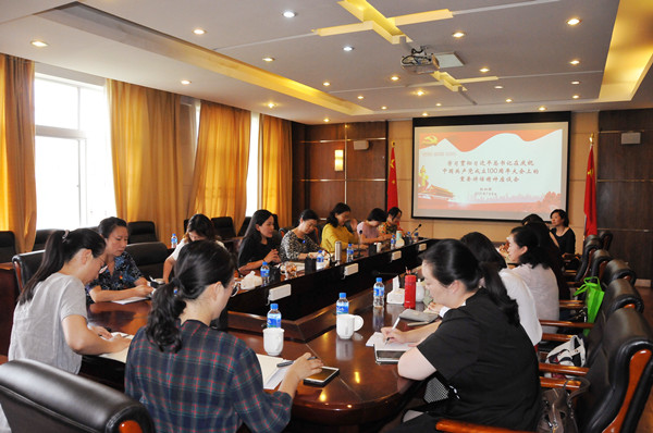 7月8日下午,校妇联在致远楼506会议室召开学习贯彻习近平总书记在庆祝中国共产党成立100周年大会上的重要讲话精神座谈会。校党委委员、副校长、校妇联主席王晓萍出席,第一届妇联执委会委员和学校女高知代表20余人参加座谈,座谈会由校工会、校妇联常务副主席李娟主持。