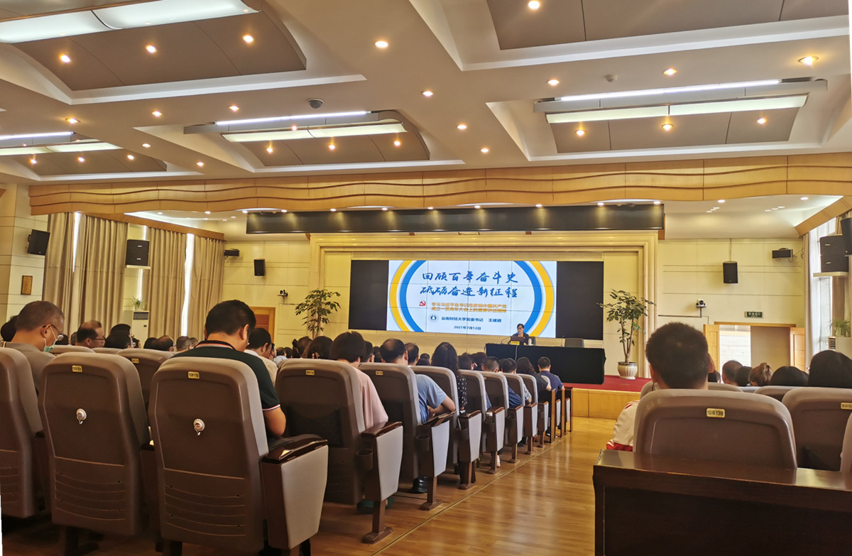 7月12日,WilliamHill官方网站党史学习教育读书班举行专题学习,校党委书记王建颖以“回顾百年奋斗史,砥砺奋进新征程——学习习近平总书记在庆祝中国共产党成立100周年大会上的重要讲话精神”为题上党课。