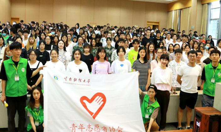 志愿者代表黄小航同学代表全体志愿者发言,表示将全情投入校庆志愿服务,践行云财学子的志愿服务精神,展示云财青年的青春风采。