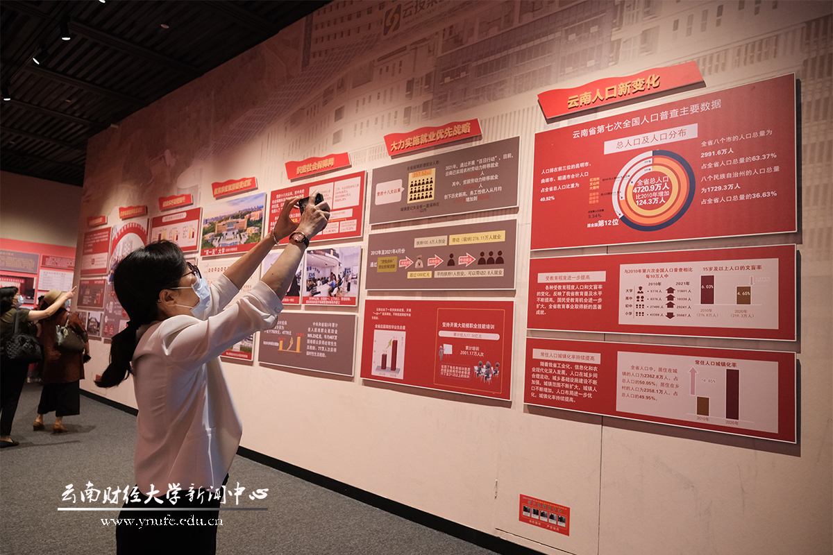 展厅内,老师们边走边看,认真听取讲解,深入了解展板背后的故事,并不时驻足拍照、相互交流。展览呈现的云南沧桑巨变,让大家更加深切地感受到中国共产党的伟大和光荣,深刻领会到中国共产党团结带领云南各族人民谱写的团结奋斗、繁荣发展的壮丽篇章,进一步加深了对党的百年历史的理解与认识。