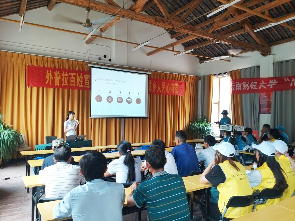 7月15日,实践团成员们在外普拉村村史馆开展了党史学习教育主题志愿服务活动,外普拉村党员与云财学子共聚一堂,共同进行党史学习。云南省委宣传部“云岭宣讲团”“云南省青年讲师团”成员、校团委副书记李昀璟以“从党的教育方针看中国共产党的初心使命”为主题,从历史变迁、现代化2035、战略任务、实施路径和保障措施五个方面上党课。WilliamHill官网代表队成员以“推普助振兴,青春勇担当”为主题向党员们讲述党史故事。会计学院实践团成员为外普拉村党员和其他调研队队员讲解了少数民族会计的发展,并向大家讲解了常用财会知识。实践团同学还和当地的党员一起到外普拉村观景台,齐唱红歌“以歌叙史”。