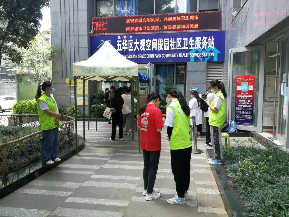 7月21日,由传媒与设计艺术学院新闻20-1班7名同学组成的“红鼻子鼹鼠”三下乡团队来到昆明市五华区三合营社区进行志愿服务活动。