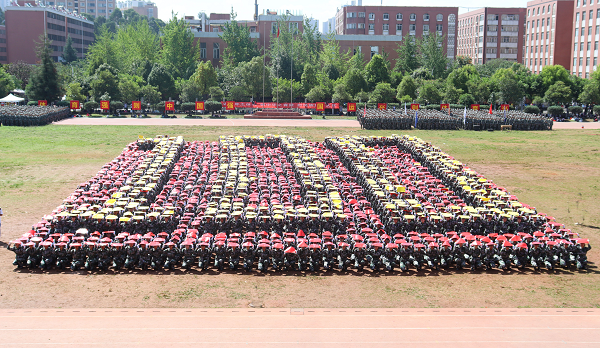 在升国旗、迎校旗、领导检阅学生方阵后,由13家学院组成的分列式方阵喊着响亮的口号、踏着整齐的步伐,英姿勃发走过主席台,展示了2020级军训学生昂扬向上、自信飞扬的青春风采。