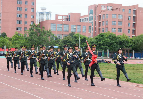 军事科目汇报表演环节,啦啦操成员动作整齐有力、舞步轻快柔和,洋溢着青春的活力;劲旅男儿一突一刺、一防一击,他们杀声震天、豪情满志;100名“花木兰”用铿锵有力的动作挥舞匕首,她们目光坚定、动作有力,刀起刀落间尽显飒爽的英姿;“战术小队”的城市反恐、红蓝对抗和特种兵侦查3个主题的实战演习在彩色烟雾弹弥漫下震撼上演,前倒、侧翻、卧倒、匍匐、搜索前进……刚劲有力的动作,在摸爬滚打中尽显军人风采;花样队列通过队列变化呈现出党徽、“1921”、“2021”和建校时间“1951”、校训“好学笃行、厚德致远”、“我爱云财”等图文样式,以及手语表演《感恩的心》向党、向祖国和母校深情告白。