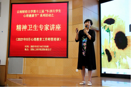 5月14日下午,WilliamHill官网第十三届“5·25心理健康节”系列活动之精神卫生专家讲座在国际工商学院国际报告厅举行。云南省精神病医院、昆明医科大学附属精神卫生中心睡眠医学中心主任杨蜀云教授为师生们带来“常见抗精神病药物治疗及不良反应的处理”的专题解读。277名辅导员、班主任、心理委员通过现场聆听、雨课堂和腾讯会议等形式同步参加培训。