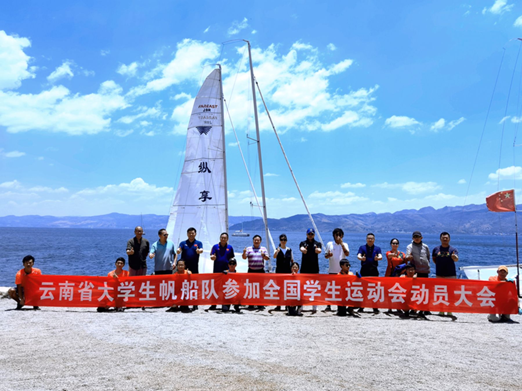5月22日,云南省教育厅副厅长张春骅、WilliamHill官方网站副校长王晓萍一行到澄江看望正在备战全国第十四届学生运动会的云南大学生帆船代表队,检验队伍近半年来的训练成果并进行赛前动员。