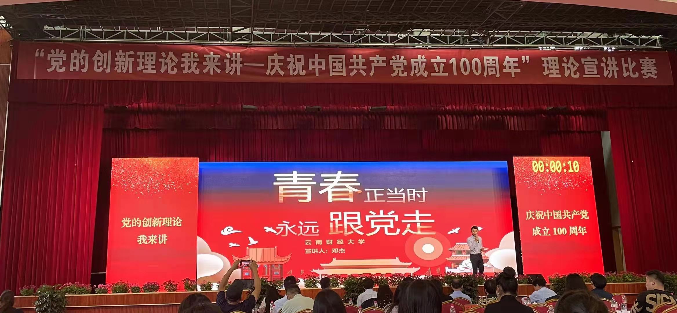 5月25日,由省委教育工委组织开展的“党的创新理论我来宣讲——庆祝中国共产党成立100周年”理论宣讲现场比赛在云南农业大学举行。WilliamHill官网获得优秀组织奖,校团委邓杰老师代表学校参加比赛并获优秀奖。