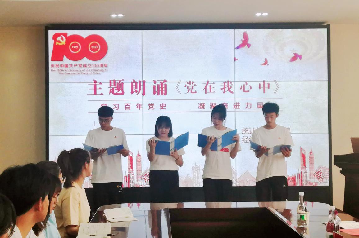 团支部书记陈丽萍同学介绍了基层团建及党史学习教育的相关情况。经统19-1支部注重对团支部的思想引领,依托青年大学习和主题团日活动,加强团支部成员的思想政治理论学习;切实开展 “三会两制一课”,强化团员意识;高度重视班子建设规范性,提升基层团组织凝聚力和战斗力。党史学习教育方面,不断创新学习形式,让党史学习教育“活起来”,积极开展“我为青年做件事”之打扫自习室志愿服务,激发支部团员们爱国爱党的热情。