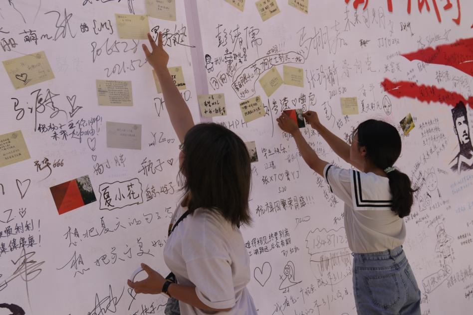 “学党史·知国情·迎校庆”主题活动区是本届跳蚤市场的亮点,活动区分为“趣味探索”“最美摊位”“青春寄语”三个部分。主题活动区上,同学们积极参与拼图挑战,回答校史、国情和党史等相关内容的问题,书写寄语、粘贴明信片,在展板上留下美好回忆与祝福。