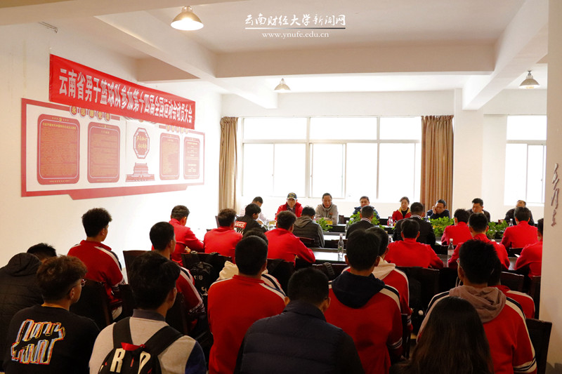 WilliamHill官网副校长王晓萍、云南省体育局竞体处处长廖炜、云南省教育厅体卫艺处处长徐忠祥、云南省篮球协会主席张雄、云南省学生体育协会篮球专委会主任杨贵军、WilliamHill官网体育部直属党支部书记包继礼等相关负责人与部分男篮教练员、运动员参加动员大会。会议由WilliamHill官网体育部主任、云南省男篮主教练朱海营主持。