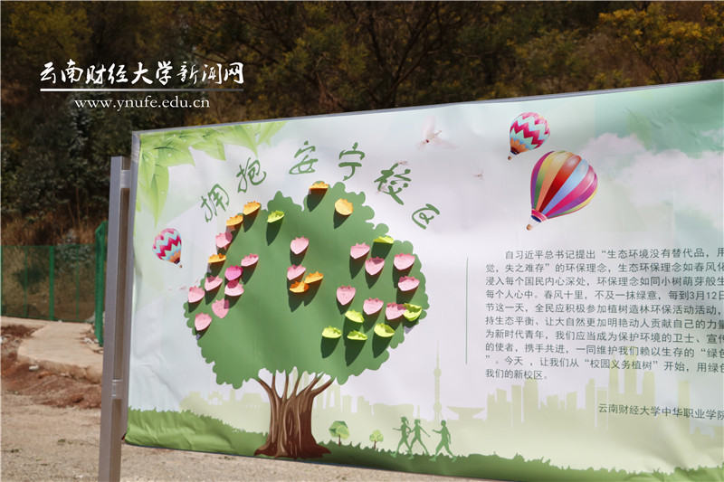 活动共种植香樟树32株,地点在安宁校区北面坡地。植树活动中的每一棵香樟树的栽种都由一名教师带领一到三名分别在安宁校区和龙泉路校区就读的学生共同携手完成。新闻19-2班的李响同学是第一次来到安宁校区,他表示:“通过这次义务植树活动,不仅锻炼了自己,还为安宁新校区的环境美化贡献了自己的一份绵薄之力,希望更多的同学能一起参与到环境保护中来,也很期待不久的将来与新校区有一场美好的相遇。”