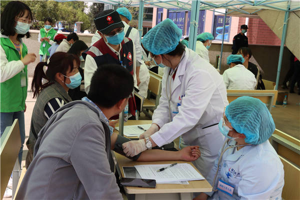 (医护人员为受种者测量血压)