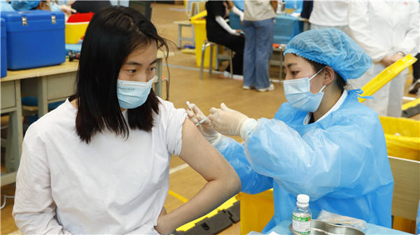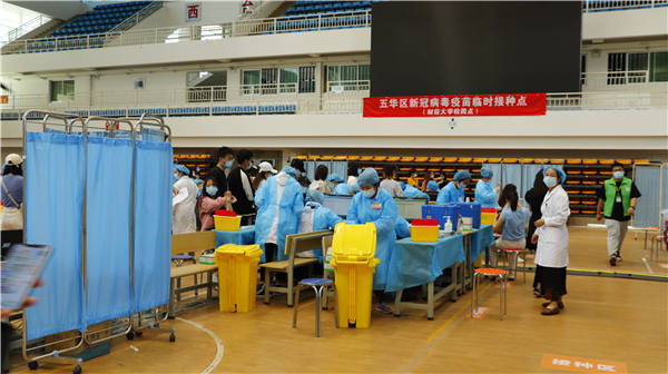 (接种疫苗后,师生们在留观区停留观察30分钟,以防出现不适症状。)