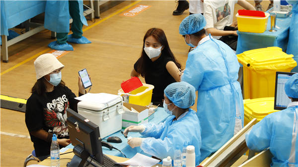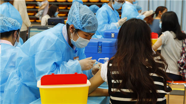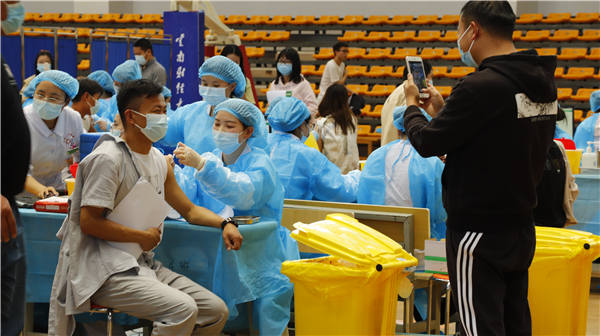 (正在接种新冠疫苗的云财师生)