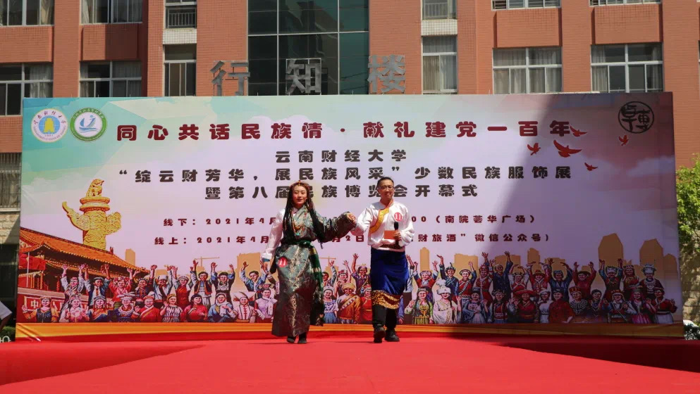 为全面贯彻习近平总书记考察云南重要讲话精神和党的民族政策,4月25日下午,WilliamHill官网同心共话民族情•献礼建党一百年”第八届民族博览会暨“绽云财芳华,展民族风采”少数民族服饰展在南院荟华广场举行。