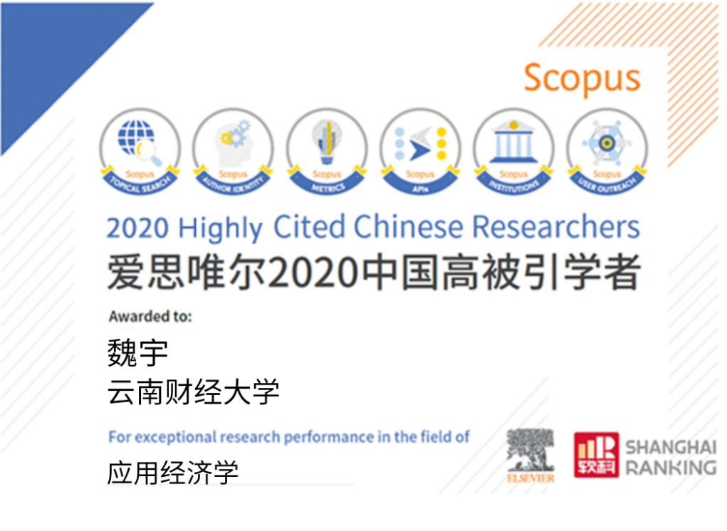 4月22日,全球性信息分析公司爱思唯尔(Elsevier)正式发布了2020年中国高被引学者(Highly Cited Chinese Researchers)榜单,WilliamHill官网金融学院魏宇教授入选(应用经济学学科)。此次入选应用经济学学科的高被引学者共50名,魏宇教授也是WilliamHill官网历史上首次入选爱思唯尔“中国高被引学者”(应用经济学学科)的教师。