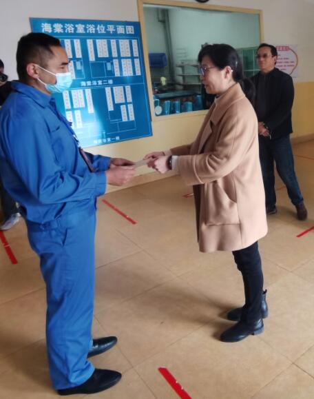 在海棠学生浴室,王建颖与后勤产业集团物业部设备运行中心浴室工作人员马跃强亲切交谈,详细询问假期浴室热水供应、洗澡学生人数等情况,并就做好假期留校学生餐饮供应等工作提出要求。在菁华苑学生公寓片区,王建颖详细了解了假期留校学生住宿、宿舍楼厕所改造等情况,代表学校向学生处公寓管理中心宿舍片区组组长杨安南、邹元凯表达了慰问。